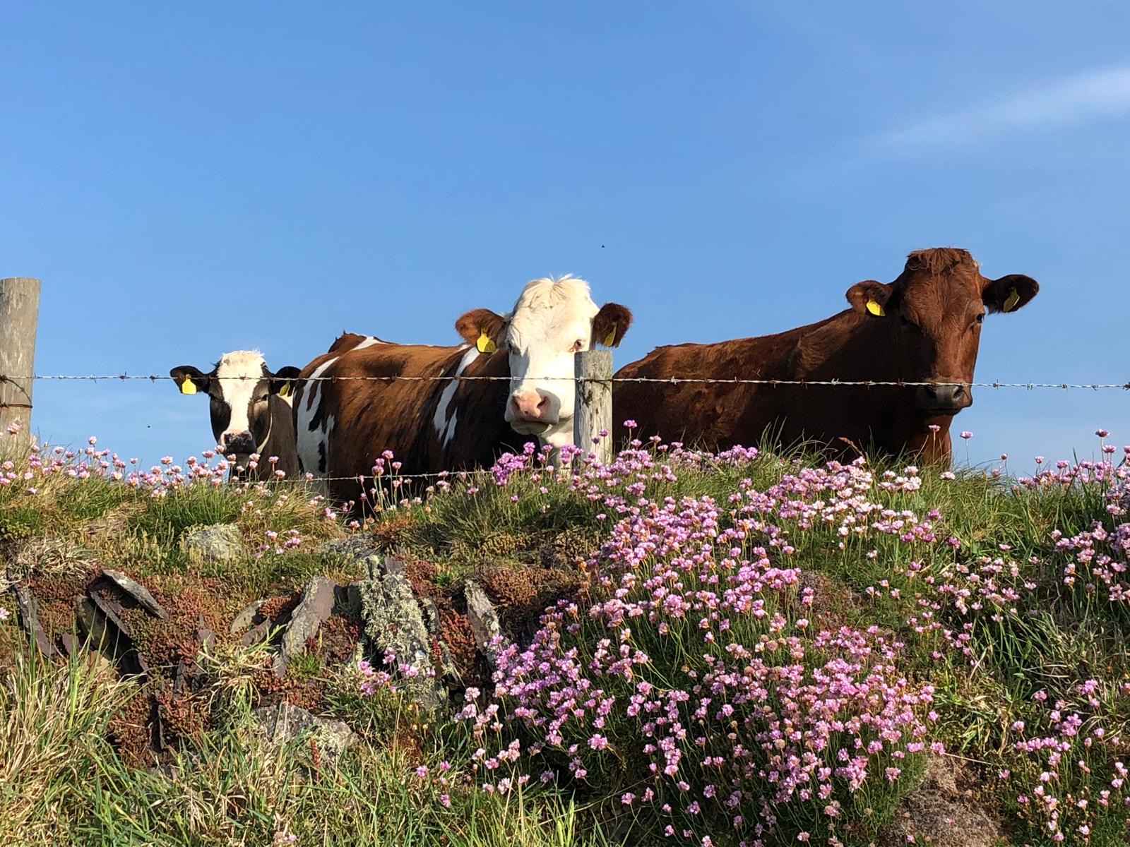 The MRI milking cows graze a range of pastures from coastal grasses, old pastures with a wide variety of grasses and herbs, to clover laden grassland and Lucerene. Our mild Pembrokeshire climate allows the cows to be out grazing the natural grasslands from early March, until Christmas. No sprays or chemicals are used on the land and the bought-in-feed does not contain any GMO’s.